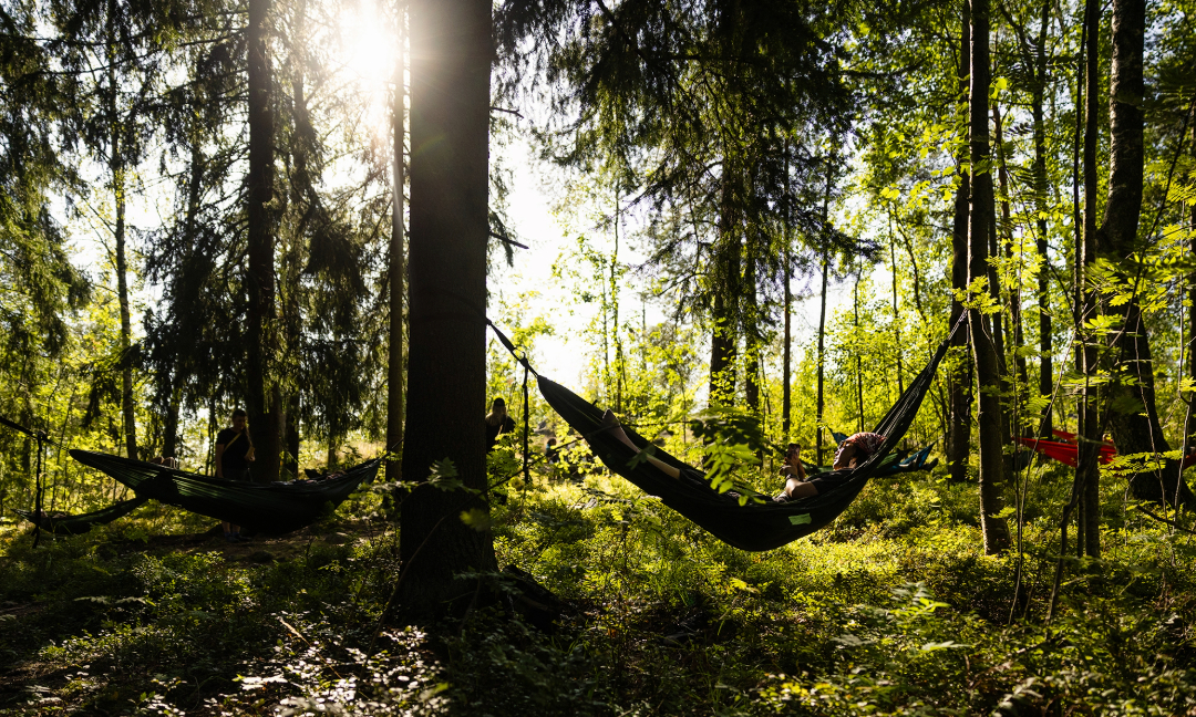 Tiesitkö, että metsässä on lupa myös levätä? Metsähetken aluksi nähdään ja kuullaan livekuvitettu satu metsässä asuvasta oravasta. Sen avulla laskeudutaan metsän rauhaan kaikkia aisteja hyödyntäen. Köllöttelemme riippumatoissa kuunnellen elävää musiikkia ja metsän ääniä. Mitä kaikkea metsä supattaa, jos pysähdymme kuuntelemaan?