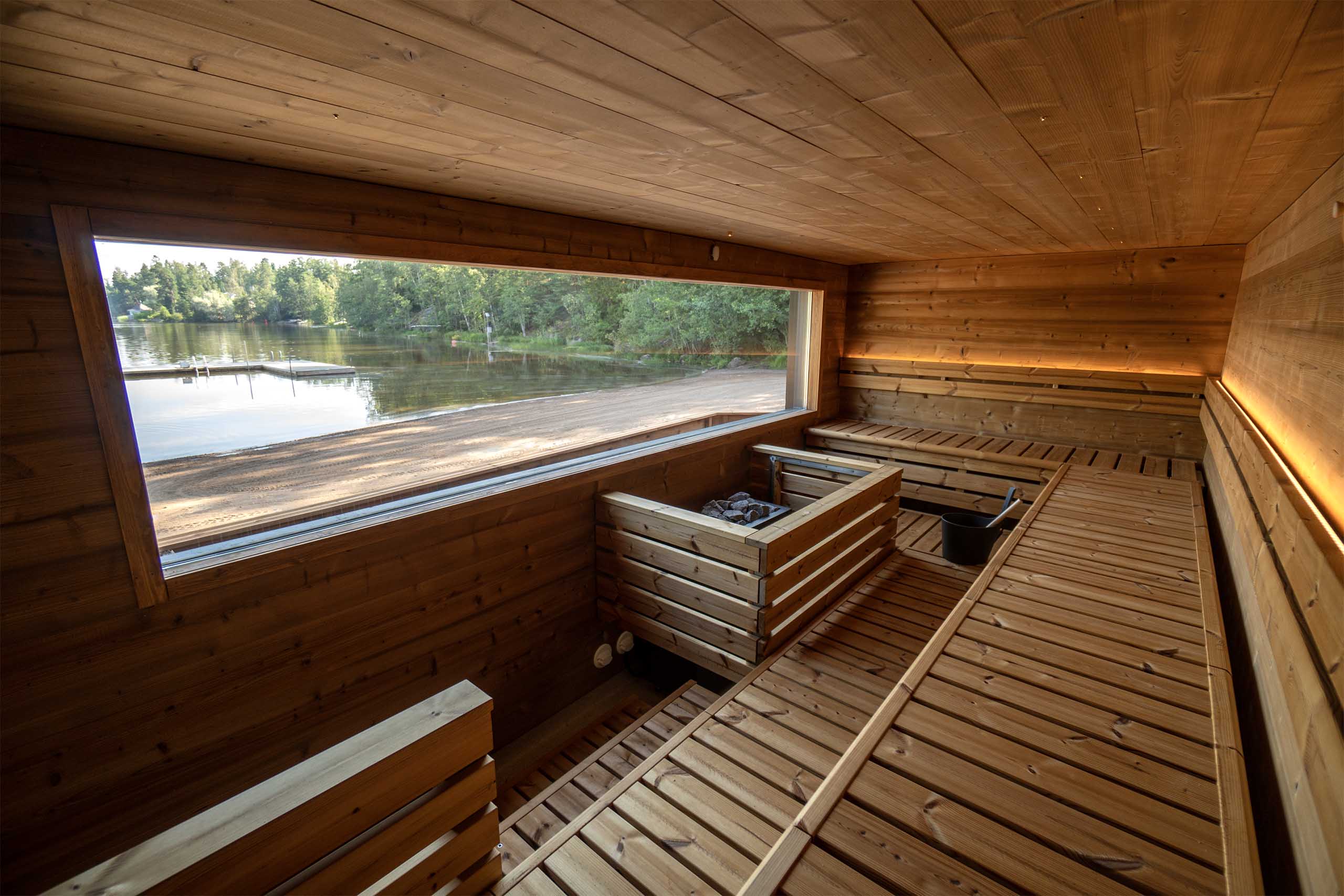 Löylykontti Laaksolahti is a public sauna in Espoo, located at the heart of an active lakeside beach where relaxation and recreation come together. Experience an urban sauna right by the lake, seamlessly blending into the natural surroundings and vibrant atmosphere. Book your sauna session at www.loylykontti.fi — you’ll receive a door code that grants you access to the sauna. The sauna is situated on the lakeshore, with a pier at the Löylykontti beach for an invigorating swim. Open and warm every day from 6 AM until midnight.